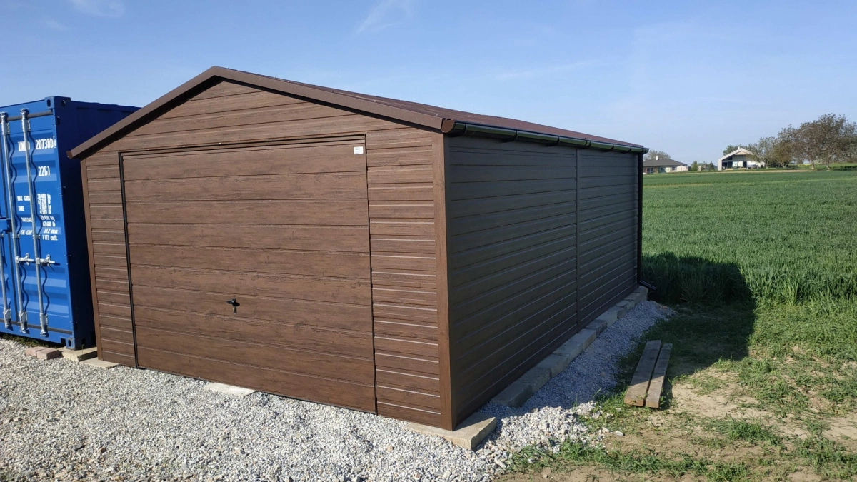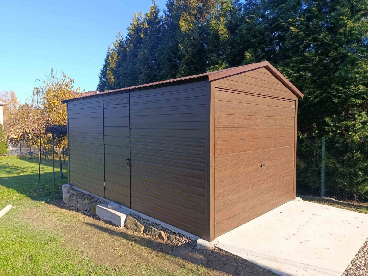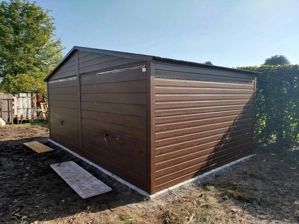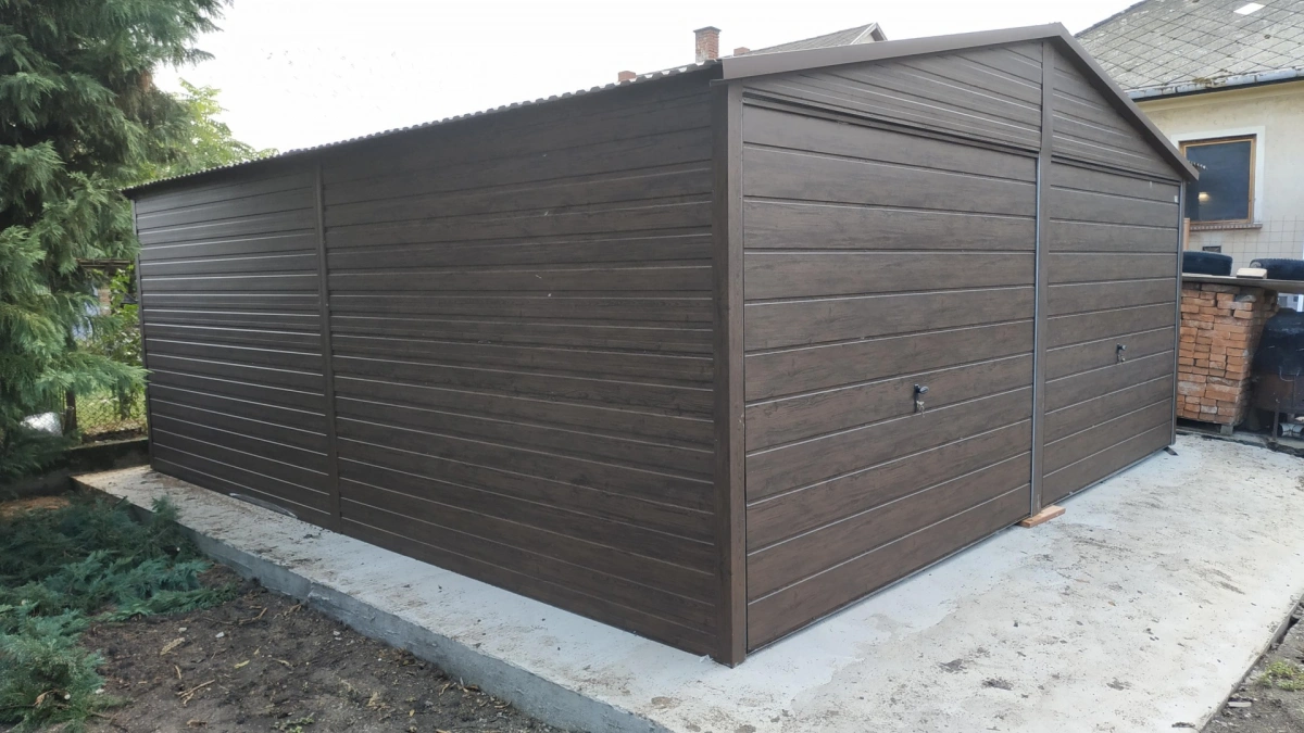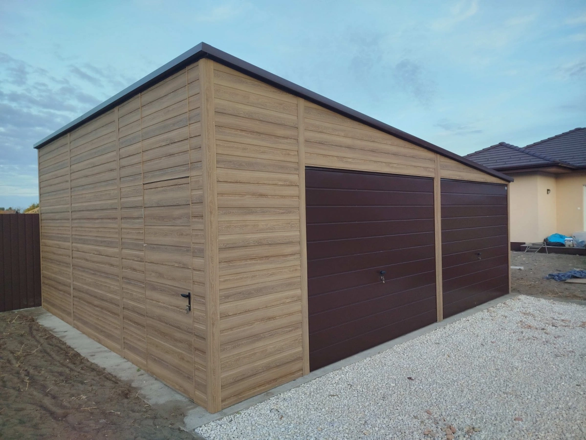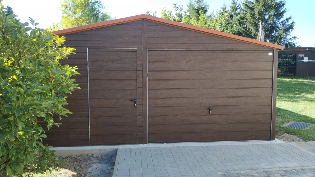 Garaż blaszany PREMIUM 6m x 6m - Orzech
