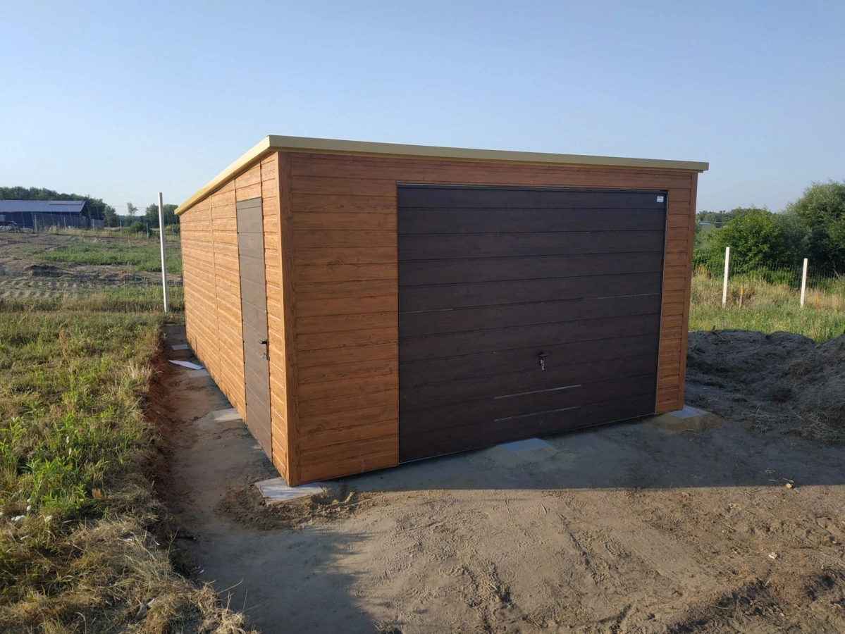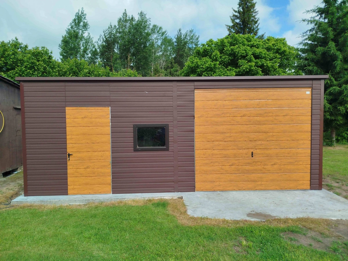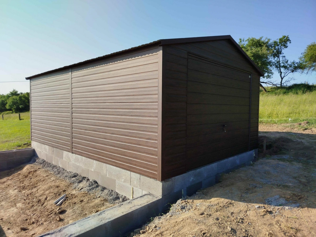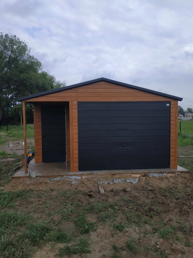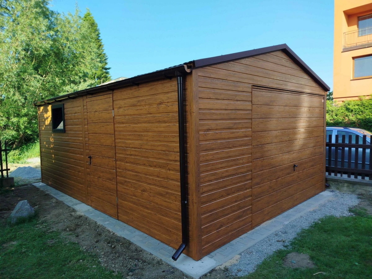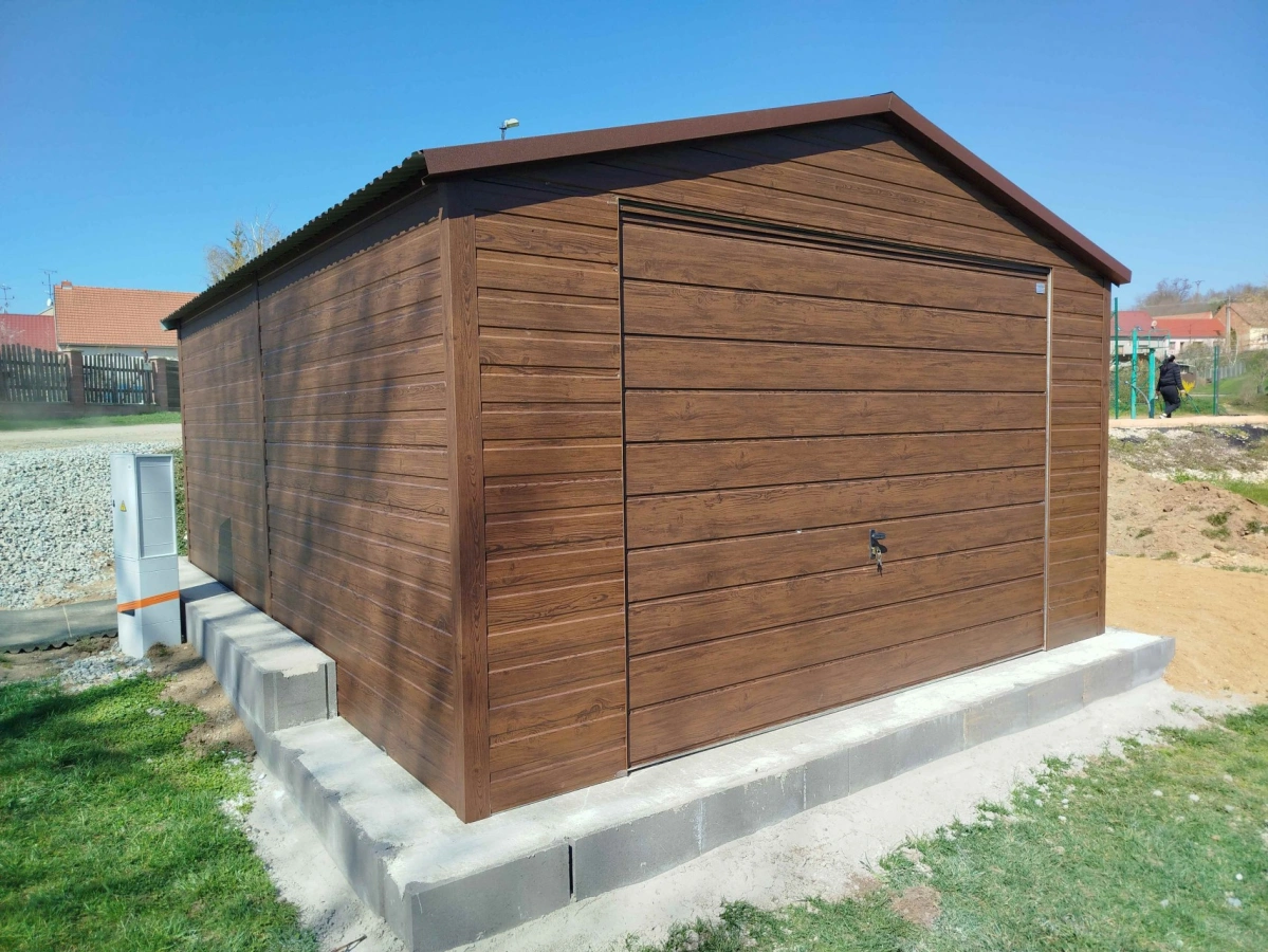 Garaż blaszany PREMIUM 6m x 6m - Orzech