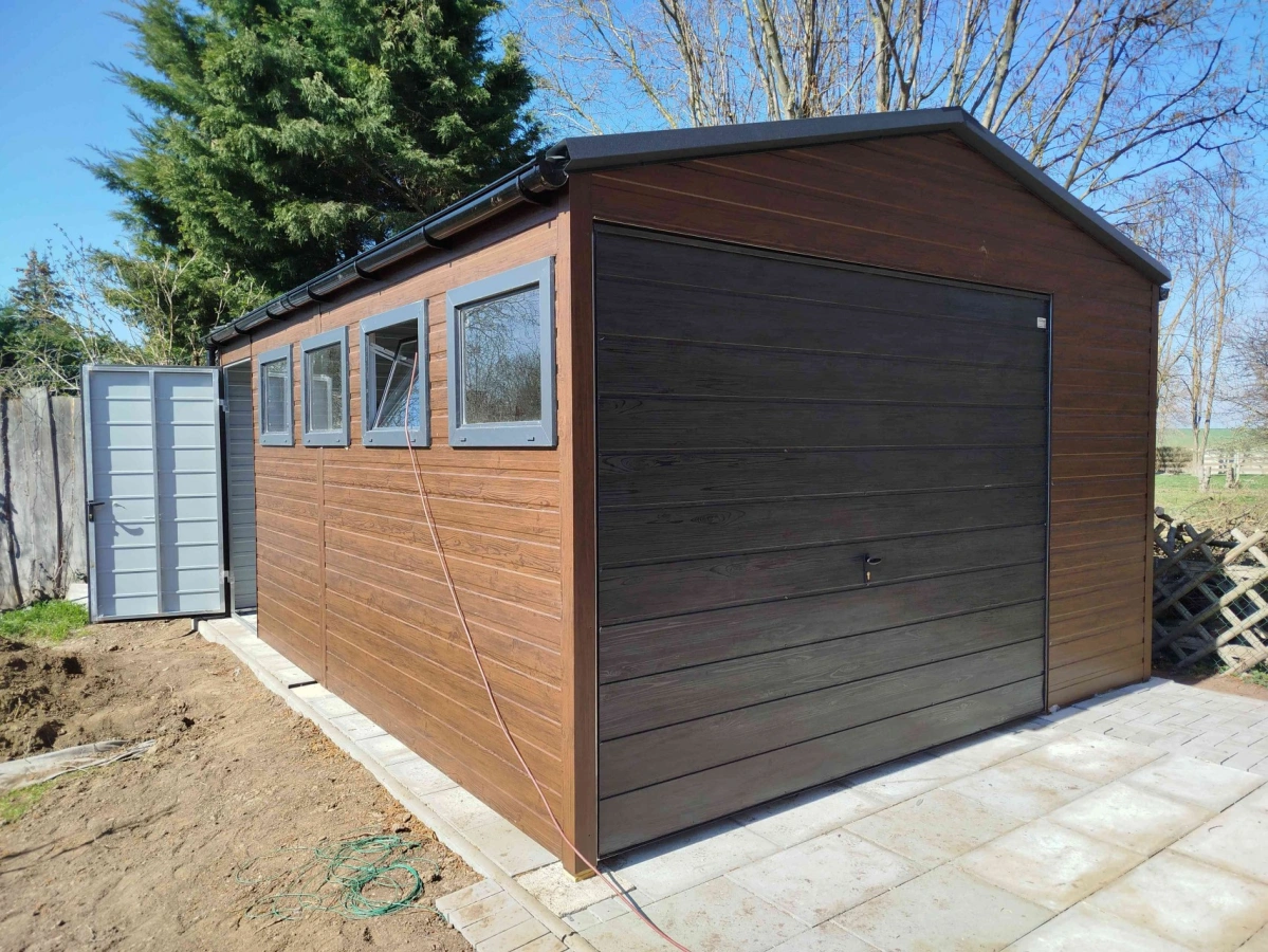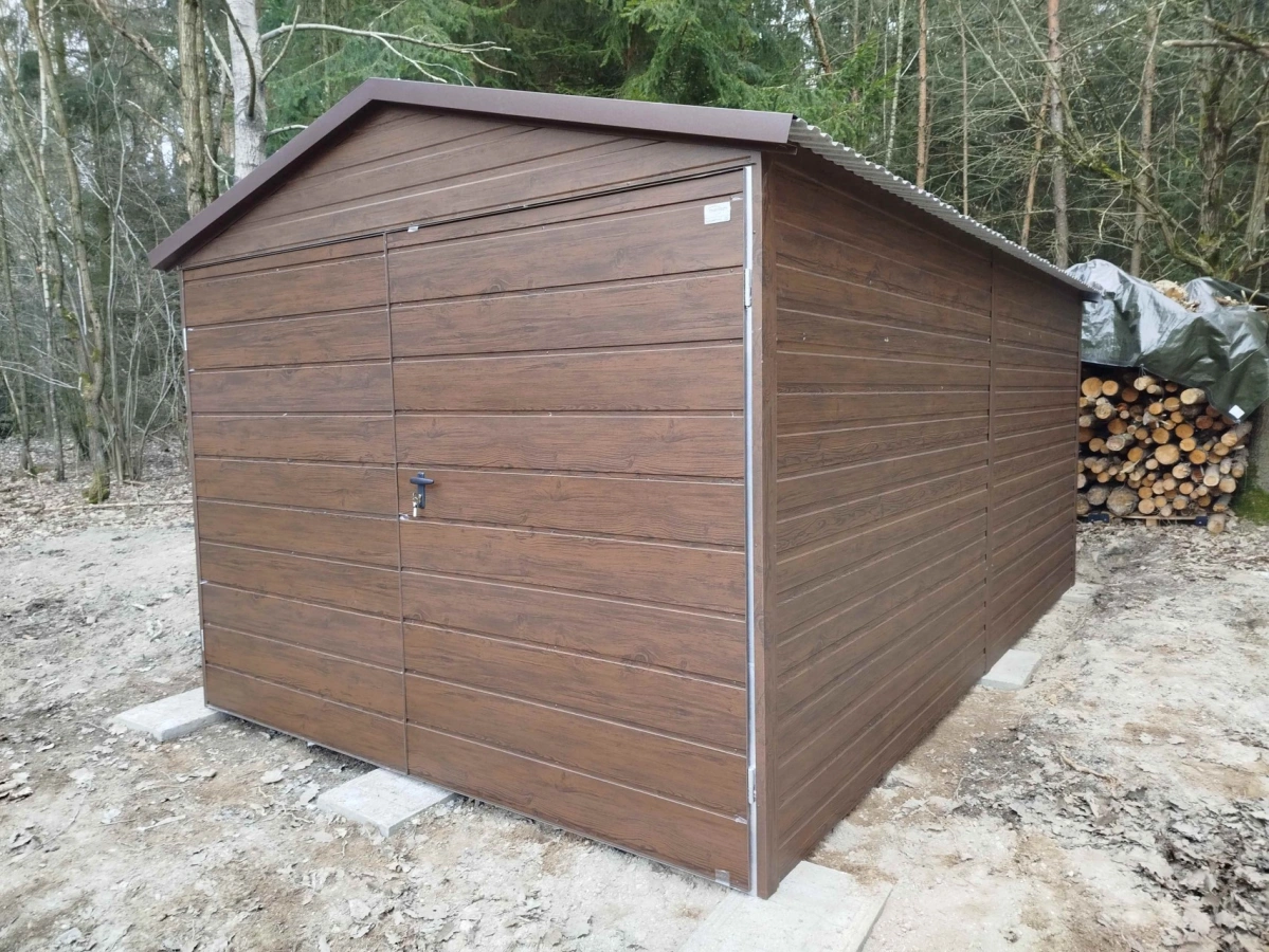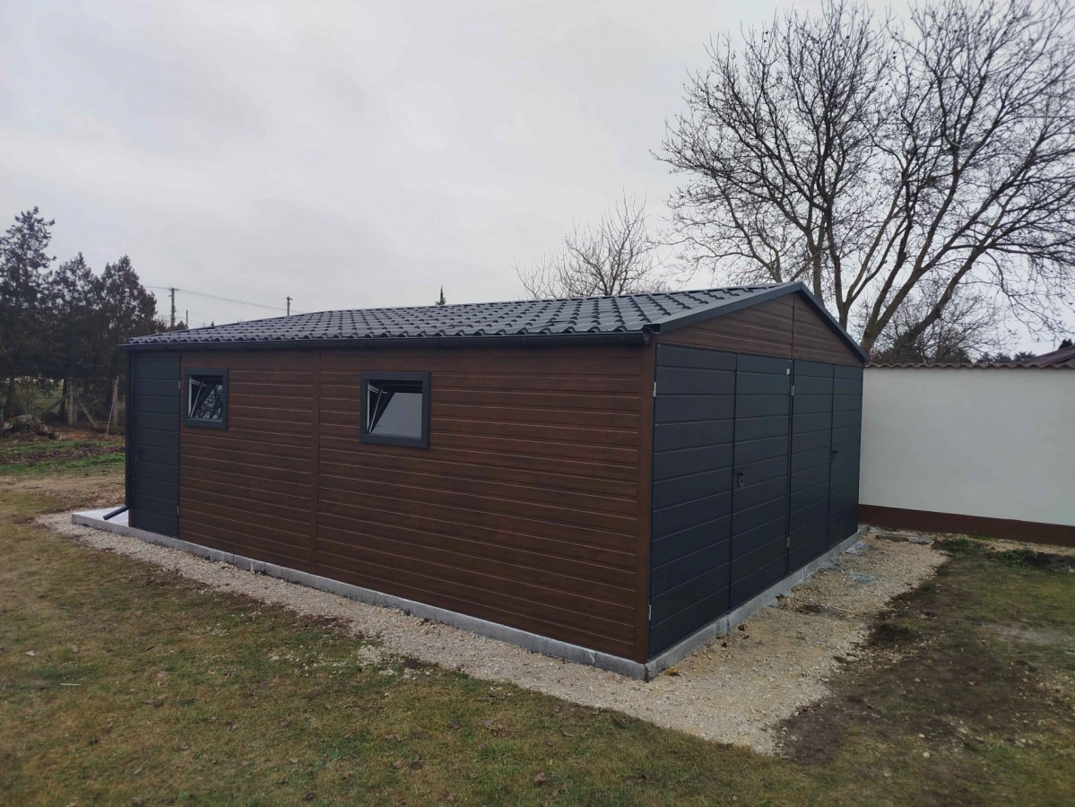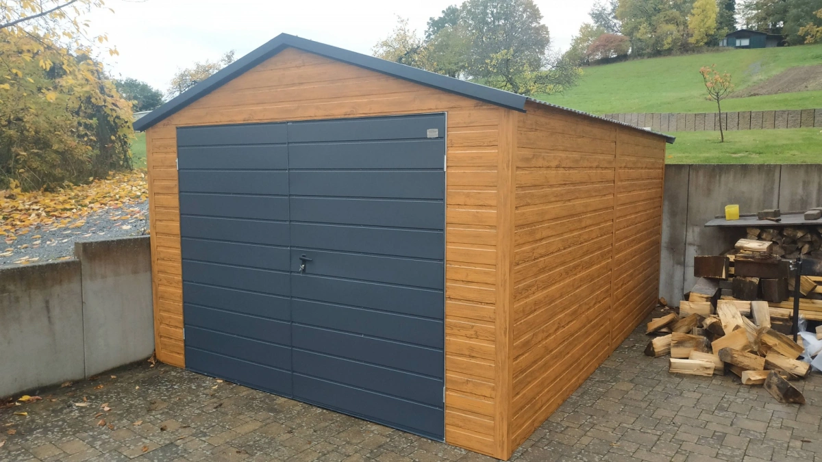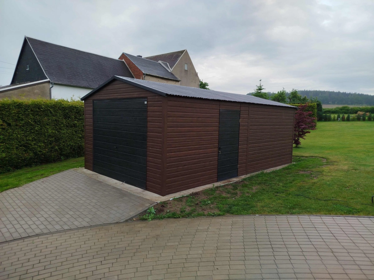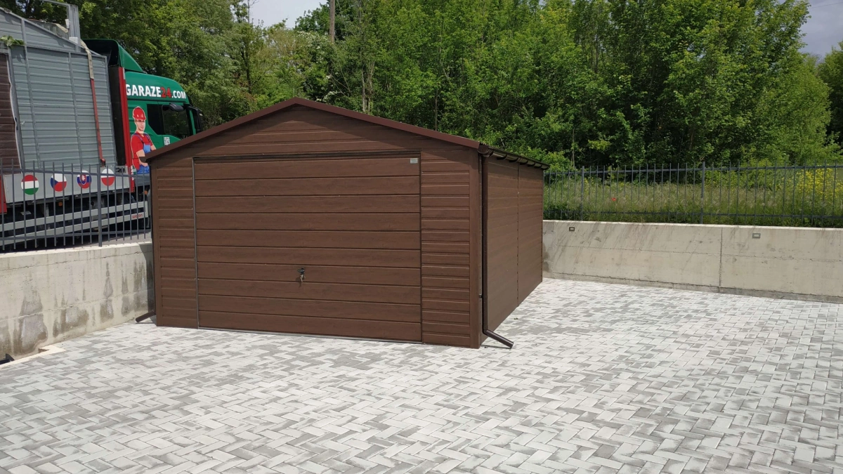 Garaż blaszany PREMIUM 6m x 6m - Orzech