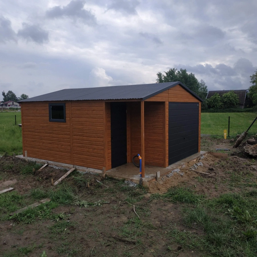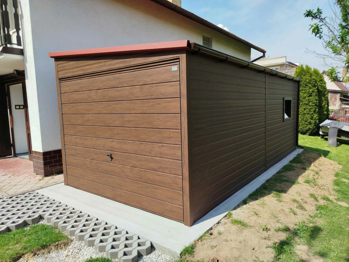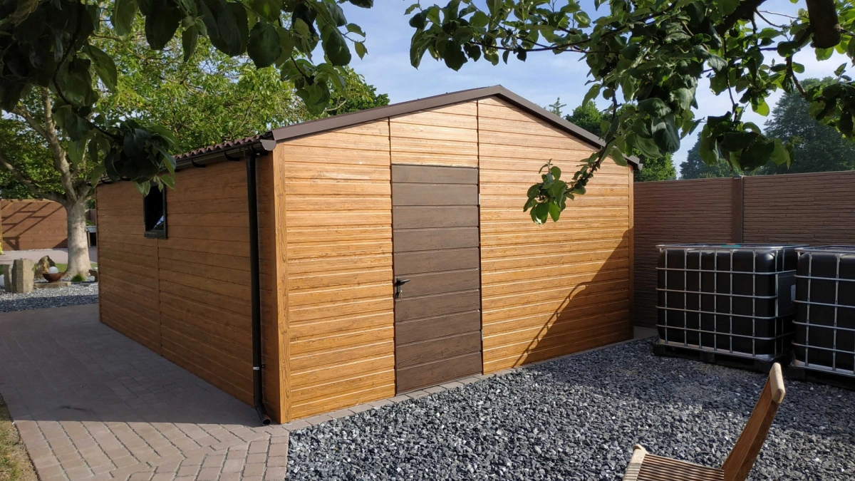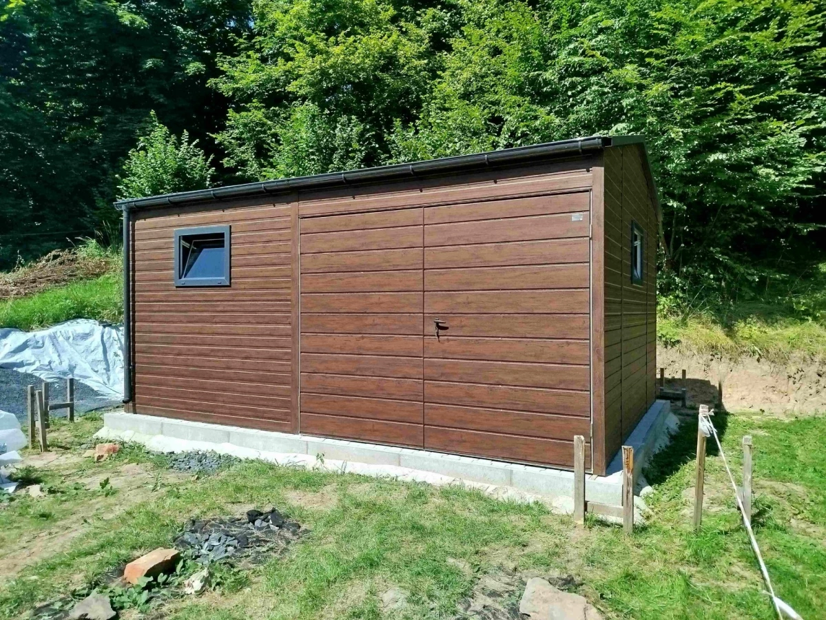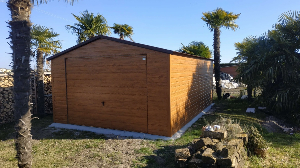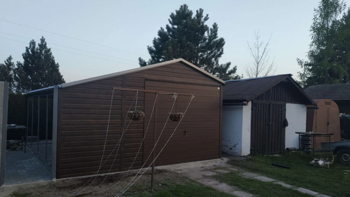 Garaż blaszany PREMIUM 6m x 6m - Orzech