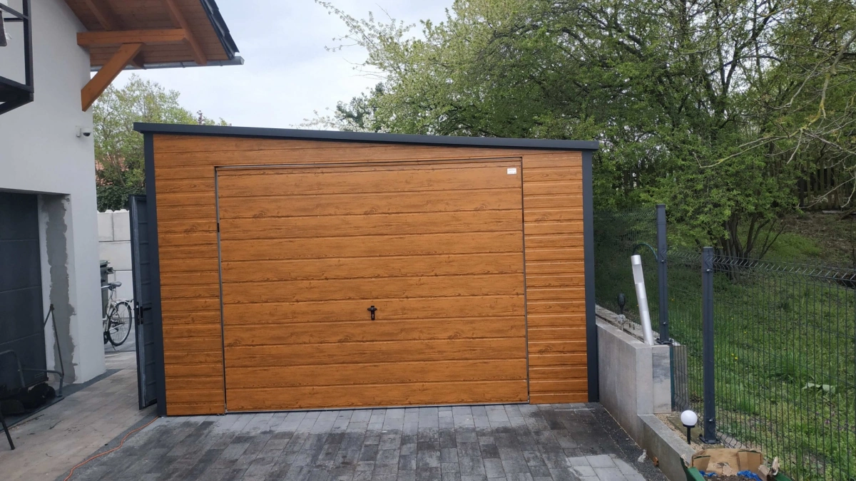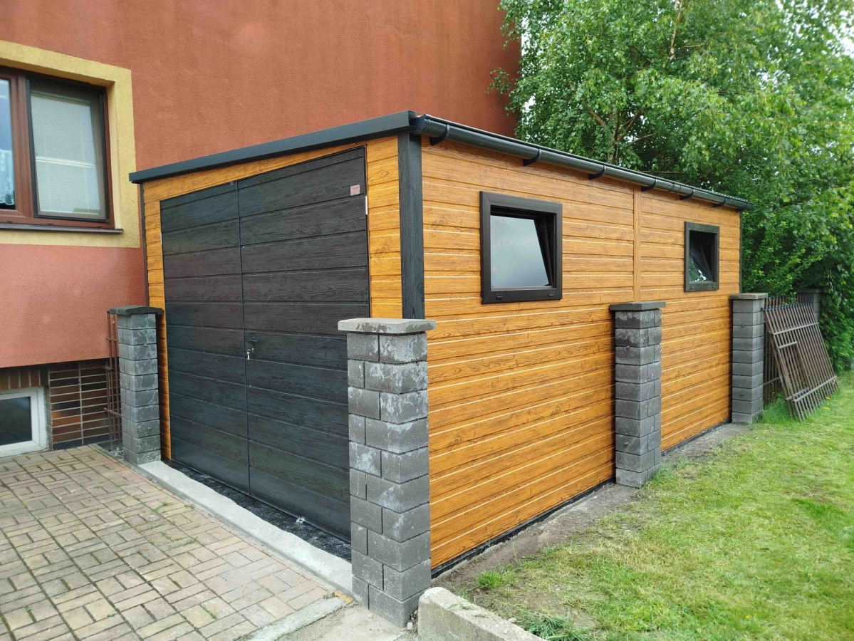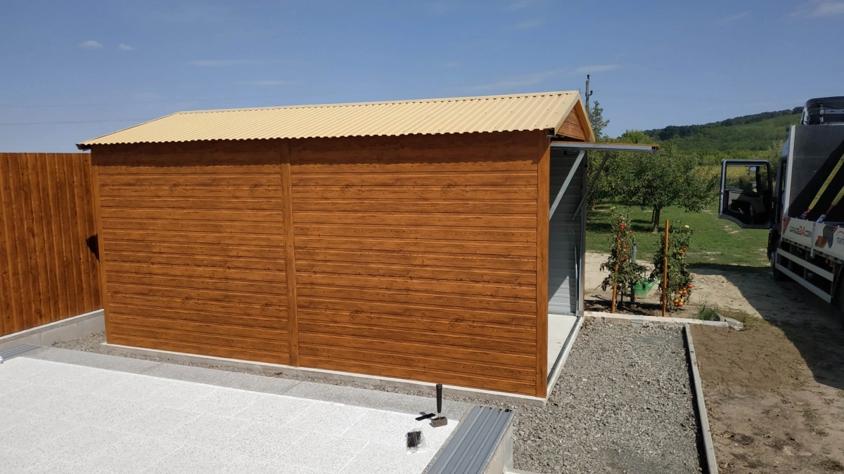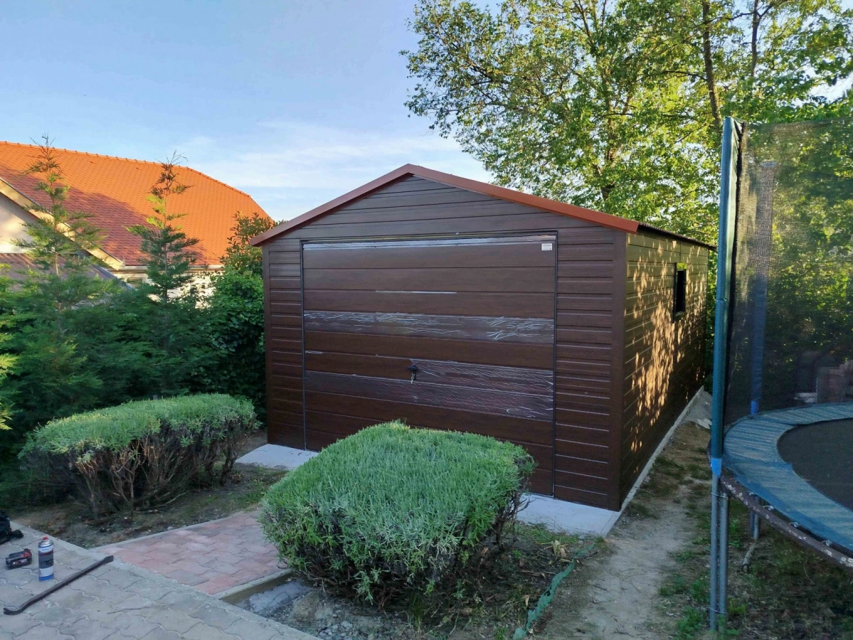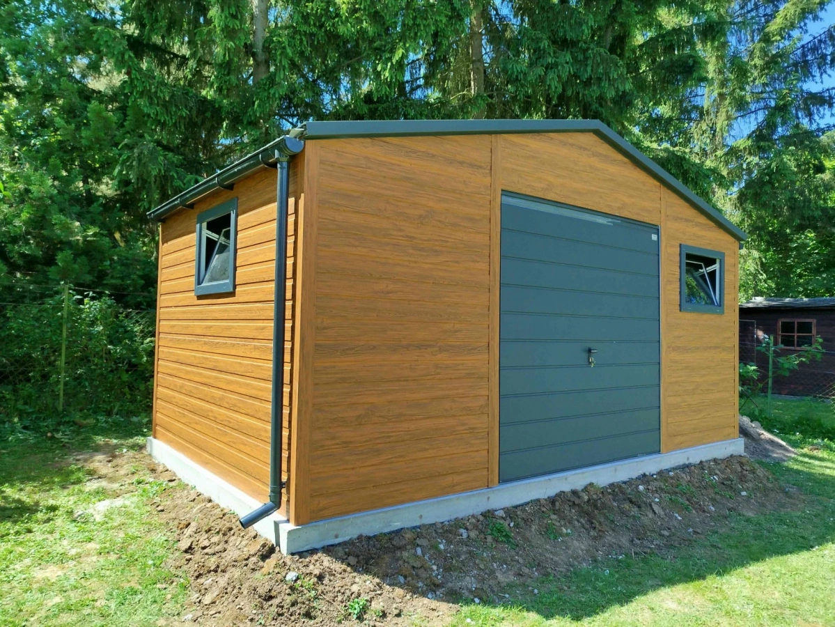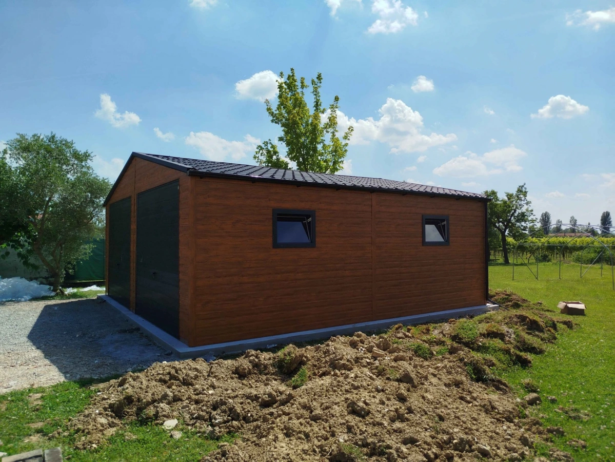 Garaż blaszany PREMIUM 6m x 6m - Orzech