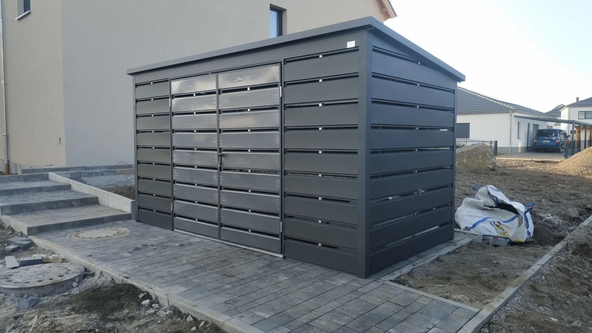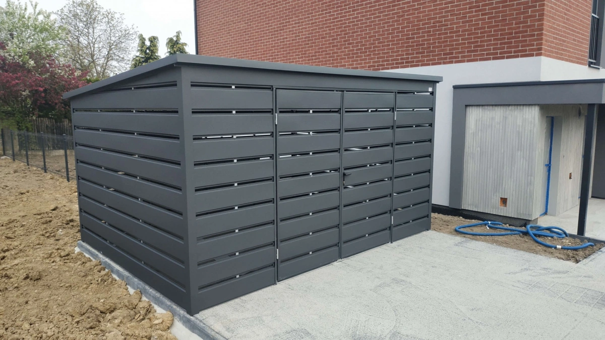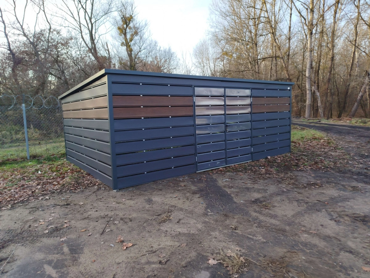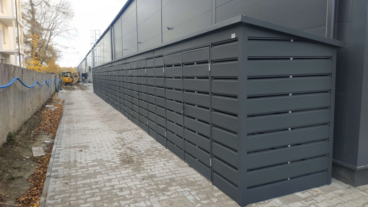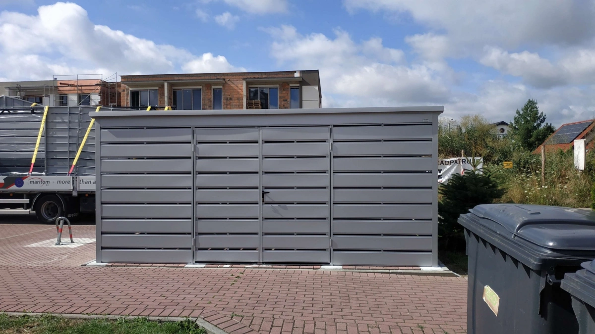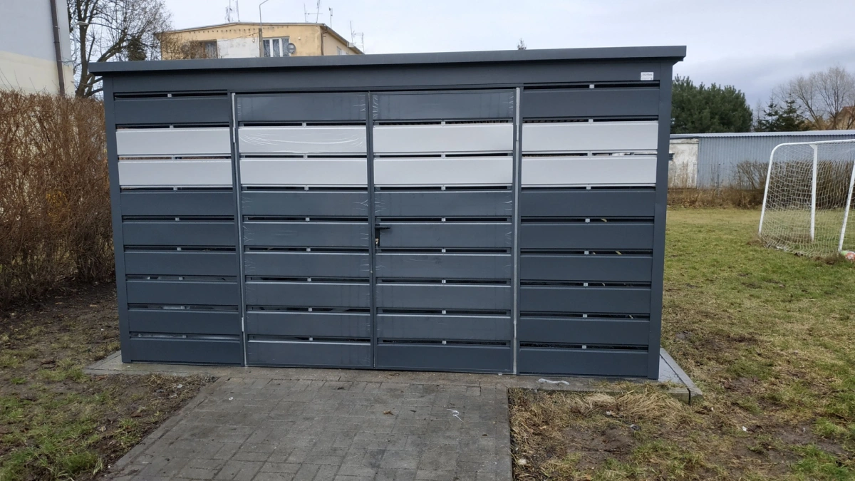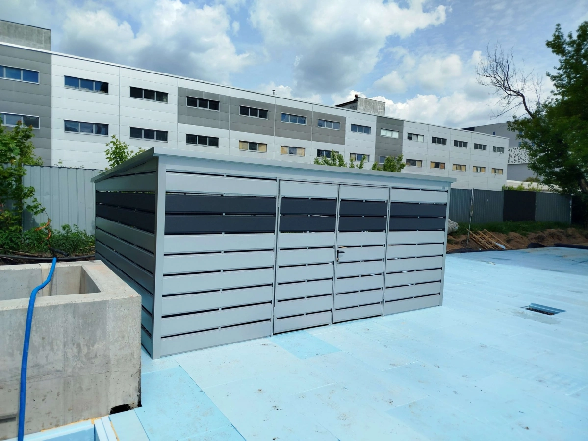 <p>Wiata śmietnikowa o wymiarach <strong>3m x 3m</strong> naszej produkcji to nowoczesny i estetyczny sposób na przechowywanie koszy na śmieci. </p> <ul> <li>Wymiary są odpowiednio dobrane do wielkości pojemników 240 l lub 1100 l, zapewniając porządek we wnętrzu. </li> <li>Szeroka brama (standardowo 2m, ale możliwe są również inne wymiary) pozwala na swobodne wyciąganie i wkładanie koszy na śmieci do środka.</li> <li>Jednospadowy dach (ze spadkiem ku tyłowi) ułatwia usuwanie śniegu i odprowadzanie deszczu.</li> <li>Mocna konstrukcja jest odporna na warunki atmosferyczne i trwała. Profile zamknięte, ocynkowane ogniowo gwarantują jej sztywność, stabilność i elegancki wygląd. </li> </ul> <p>Wiata nadaje się do wykorzystania w charakterze schowka ogrodowego, pomieszczenia na rowery lub małego magazynku (jest zamykana na klucz). Można ją wykonać według Państwa specyfikacji i w wybranej indywidualnie kolorystyce, by jeszcze lepiej komponowała się z otoczeniem.</p>