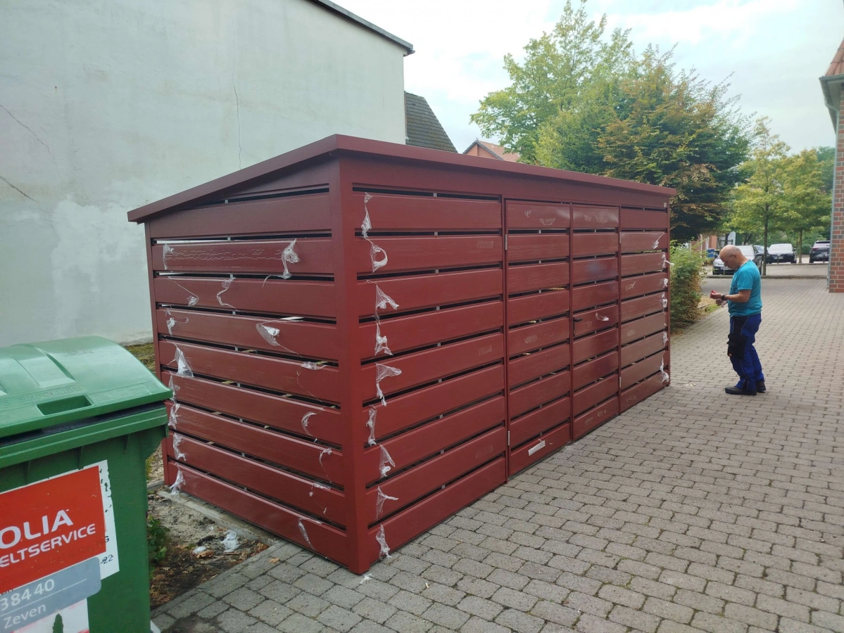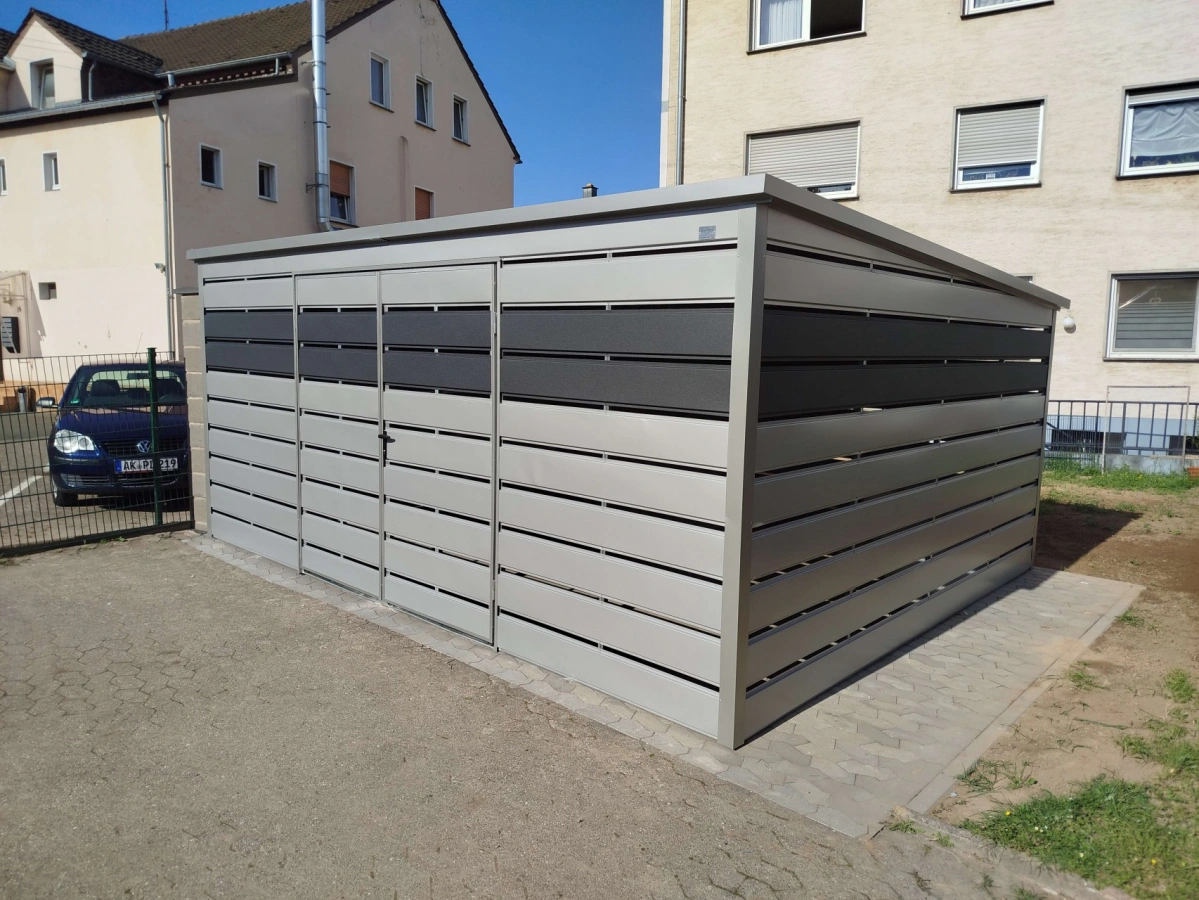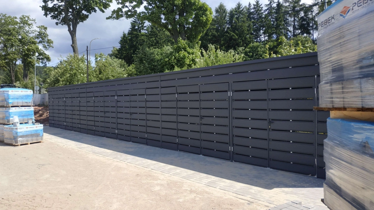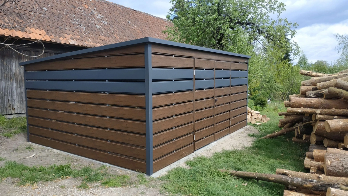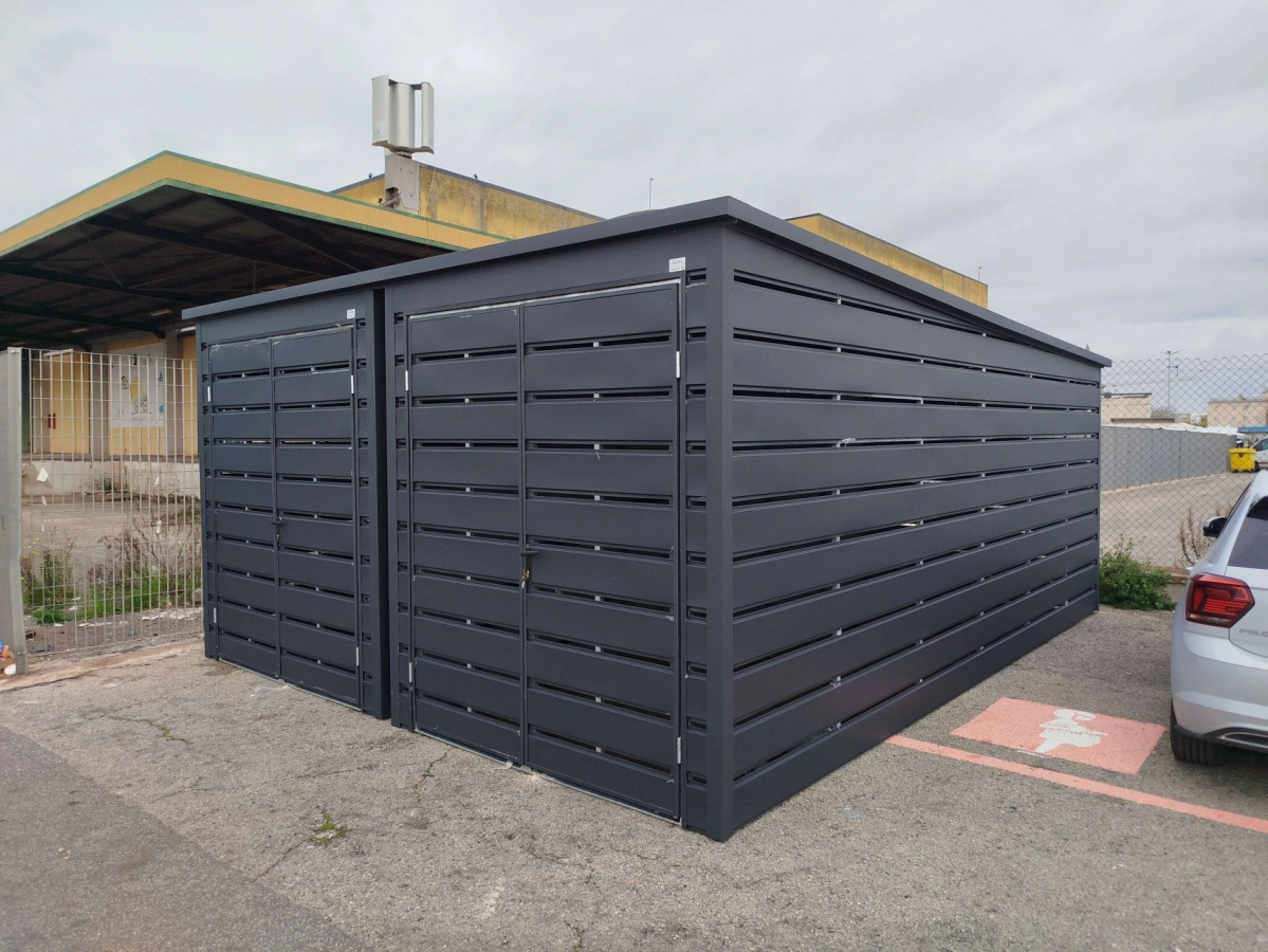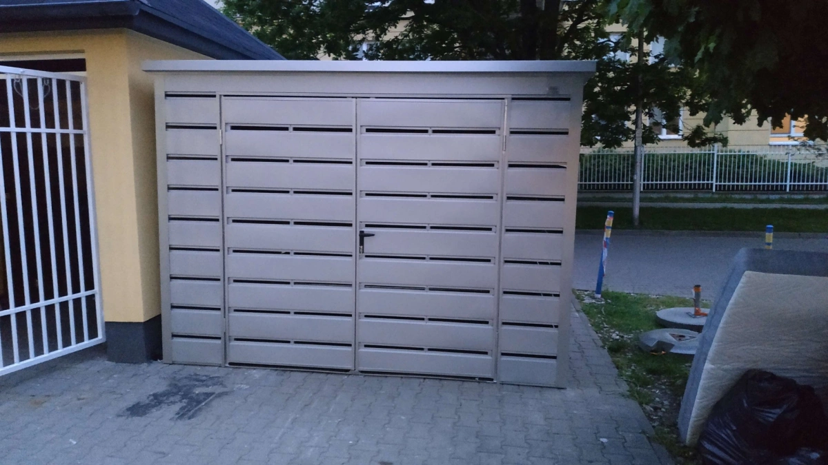 <p>Wiata śmietnikowa o wymiarach <strong>3m x 3m</strong> naszej produkcji to nowoczesny i estetyczny sposób na przechowywanie koszy na śmieci. </p> <ul> <li>Wymiary są odpowiednio dobrane do wielkości pojemników 240 l lub 1100 l, zapewniając porządek we wnętrzu. </li> <li>Szeroka brama (standardowo 2m, ale możliwe są również inne wymiary) pozwala na swobodne wyciąganie i wkładanie koszy na śmieci do środka.</li> <li>Jednospadowy dach (ze spadkiem ku tyłowi) ułatwia usuwanie śniegu i odprowadzanie deszczu.</li> <li>Mocna konstrukcja jest odporna na warunki atmosferyczne i trwała. Profile zamknięte, ocynkowane ogniowo gwarantują jej sztywność, stabilność i elegancki wygląd. </li> </ul> <p>Wiata nadaje się do wykorzystania w charakterze schowka ogrodowego, pomieszczenia na rowery lub małego magazynku (jest zamykana na klucz). Można ją wykonać według Państwa specyfikacji i w wybranej indywidualnie kolorystyce, by jeszcze lepiej komponowała się z otoczeniem.</p>